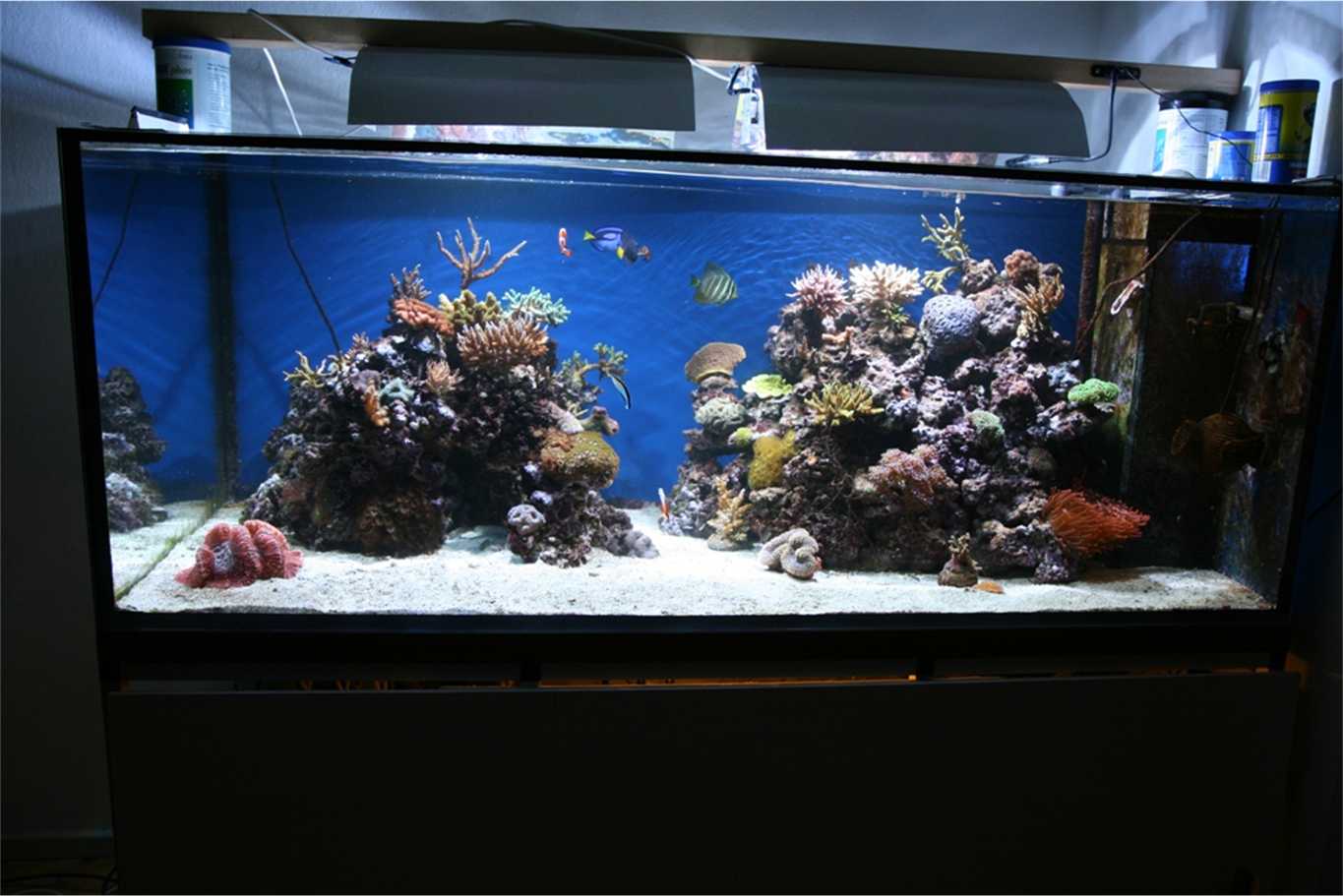 Det ser da godt ud! Og så er jeg ret vild med den avancerede måde I har hængt lamperne op på!! Et par bedre reflektorer ville give mere lys i kanterne af akvariet.