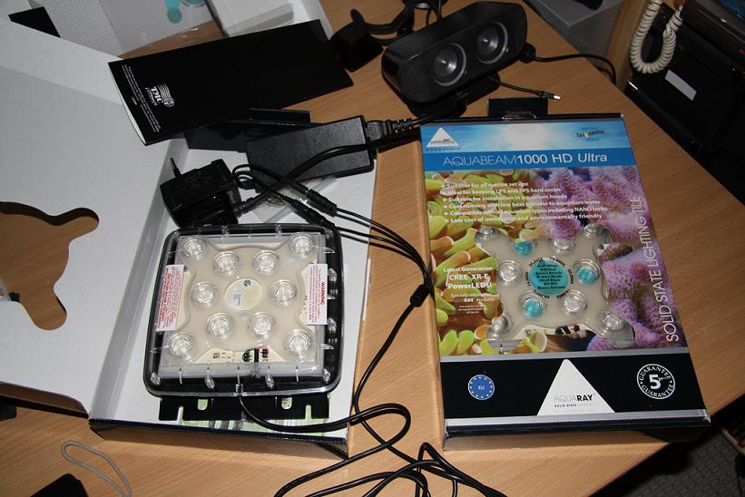 Ja jeg har jo lovet et feedback, men jeg har haft lidt travlt. Jeg købte 2 Aquabeam (nyt navn, samme produkt) 500, med 3 hvide og 2 blå i hver. De giver et sindsygt flot skær men mangler lidt intensitet især i dybden, hvor det primært er de blå farver der er synlige. Jeg har derfor kørt dem parallelt med min HQI i en periode. I den side hvor jeg har kørt med Aquabeam 500 synes jeg faktisk mine koraller står flot og er vokset. Jeg har i sidste uge købt 2 af de nye Aquabeam 1000 HD. Jeg venter på at de kommer, når de er kommet vil jeg køre akvariet kun med dem og mine Aquabeam 500. Jeg vil prøve om jeg ikke kan tage nogle billeder og poste her når jeg har fået dem.