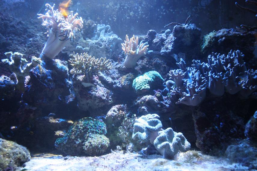 Udover mit gulv (grrrr....) så har akvariet aldrig stået pænere. Klart vand, minimalt med cyano og øvrige alger (der er nu makroalger) og sunde fisk og struttende koraller. Alle korallerne vokser fint.