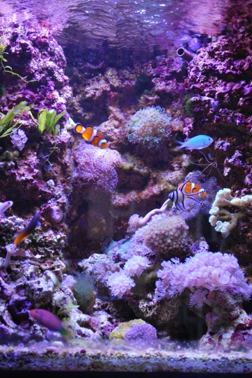 Tilgengæld er et meget lille 25 liters kørende med diverse koral stumper, en reje og et par klovne.