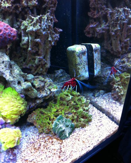 købte mig i onsdags 2 dannebro rejer mere inde i klovnen hvor de åbenbart var for små så min koralvogter nappede dem lige :T
