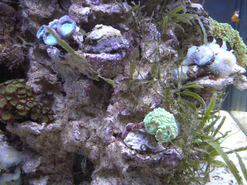 Vedr caulerpa så er der lidt delte meninger. Men vi blev anbefalet af Martin (akvarius) at lade dem sidde indtil akvariet er i balance. Jeg har planer om at smide dem i sumpen på et tidspunkt, men lige nu skal akvariet bare ha ro, så jeg vil ikke begynde at rode alt for meget i det.