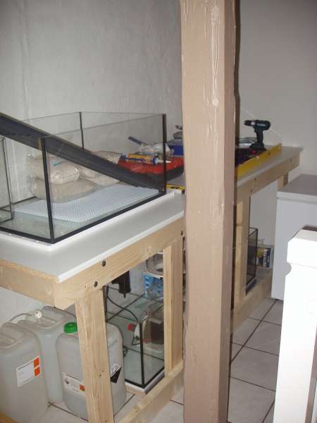 Fik lavet et bord over sumpen. Det skulle gerne være så stærkt at jeg kan smide endnu en halvstor(200-300L) balje ovenpå, skulle der være en non-reefsafe fisk man forelskede sig i