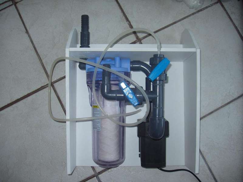 Mangler lige at få skruet de sidste dele fast. Så kan den hænge uden på akvariet mens jeg arbejder. Overvejer et grovfilter før det der, men nu får jeg at se hvor hurtigt det slammer til.