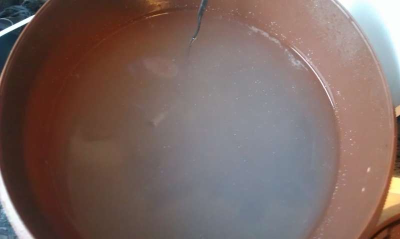 Jeg er enig i, at det du oplever i din spand er fordi du bruger hanevand. Det har jeg selv haft glæden af.