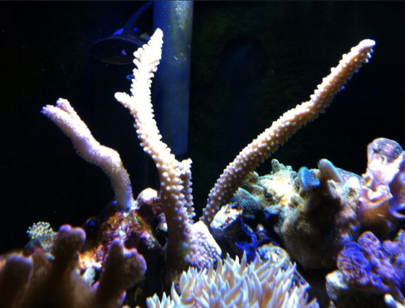 Blot et par billeder af nogle af korallerne i akvariet, for at vise at de vokser lidt