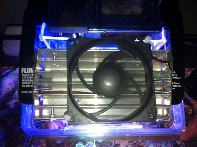 Hej Bo. Jeg har en blæser stripset fast på min køleprofil. Den tænder sammen med lyset, så der er konstant køling. Laver en update om akvariet i morgen. Der er sket lidt siden sidst