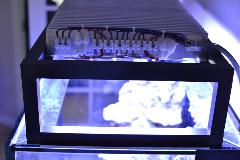 Mht. Farve sammensætning så sigter jeg efter så bredt et lysspektre som muligt. Det betyder at jeg har fra ca. 400nm (UV) 660nm (rød). Mener at have læst at både UV og rød kombineret med de normale hvide og blå, skulle være fordelagtige i forhold til fotosyntetiske koraller.