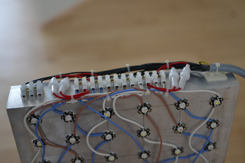 Derudover har jeg loddet en masse ledninger på min LED lampe i løbet af fredagen. Har testet lampen for fuld gas i dag og alu kølepladen bliver som forventet kun håndlun uden nogen form for aktiv køling... lækkert!