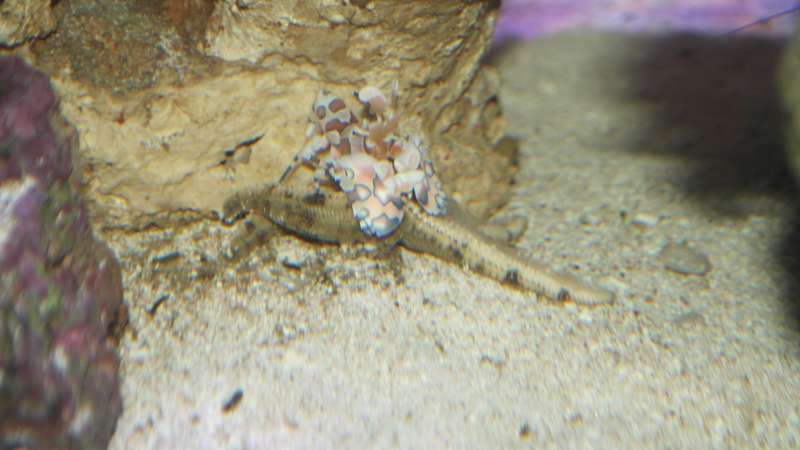 Vor harlekin reje var dog ikke tilfreds med sin nye menu, synes nok der manglede lidt asterina søstjerner, så han har lige kværket en sandsøstjerne. Hvordan han har prestæret det må guderne vide Ellers får i nogle billeder af herligheden her, samt en lille video.