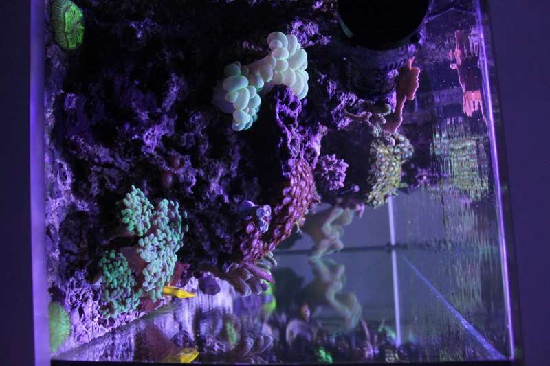 Her går det super godt med stor vækst på alle koraller , har ikke haft nogle problemer længe har dog rykket alle Lps over i min frag balje da de står pænere der i fred for diverse fisk , og så er de også nemmere at fodre.