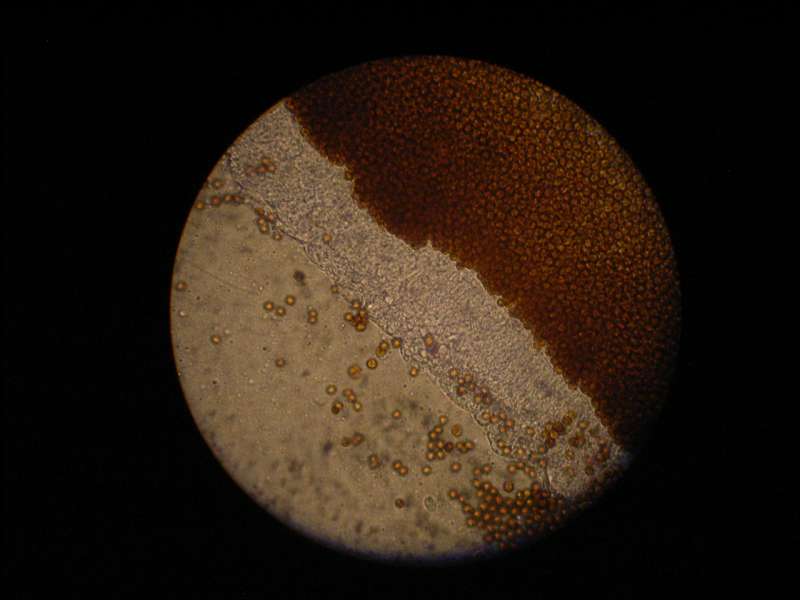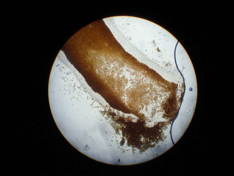 billedet forestiller en aiptasia jeg har klippet over for at prøve fotografere zooxantheller(de tydelige brune prikker