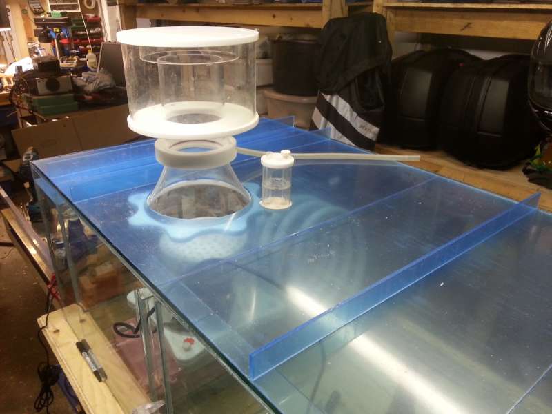 - det ser ellers lækkert ud! - jeg ville nok bare skære hullet omkring skummeren lidt større. Så er det nemmere at smide pladen på igen hvis skummeren skulle have skubbet sig lidt når du hiver pladen af - og når din skummer går amok så ville det løbe ned af siderne og ned langs skummeren og ned i sumpen