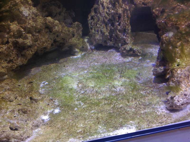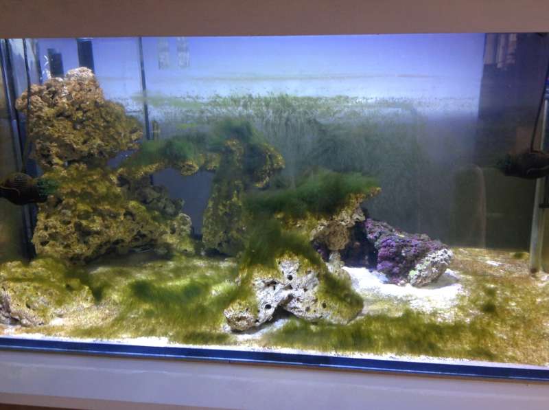 Har i dag lavet nye målinger og det ser sgu ud til at vi er ved at være klar. Som i kan se er algerne aftaget kraftigt, og alle der før stod som en græsplæne, er nu døde og brune på bunden. Jeg overvejer derfor kraftigt at give min gule kirug en ny legeplads i morgen, så kan den få has med de sidste trådalger, og så er det ud til klovnfisken, mellem jul og nytår, og hente snegle og kriblekrable til bunden.