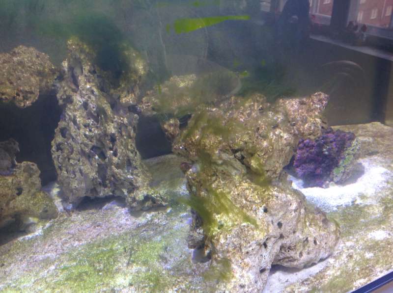 Ser FEDT ud til højre.... Venstre, som de andre siger... Jeg ville trække den enkelte sten frem, fx ud til frontruden, i hjørnet, så du lige kan komme rundt om med en rude magnet, den ville jeg så fylde med lps, zoa's, din musling? Og så fx lave et par "hylder" af LS og komme på overløbet, eller en MEGET flad sten m lidt hylder på....
