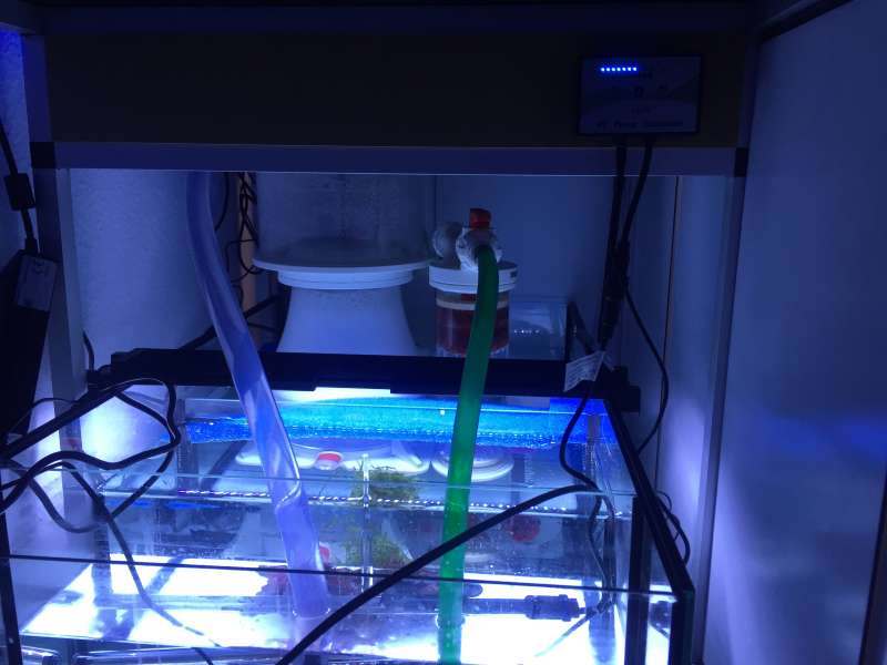 Det er især lækkert på skummeren, da man self skruer op for den ift fiskebesætning og fodring. Det er noget der rykker. Men det er også nødvendig med en ordentlig skummer, hvis man som mig fodrer så ekstremt med frost. Min filosofi er at med masser af fodder, især frostfoder i systemet så får alle organismer rigeligt at leve af, så man kører det så stabilt og naturligt som muligt...