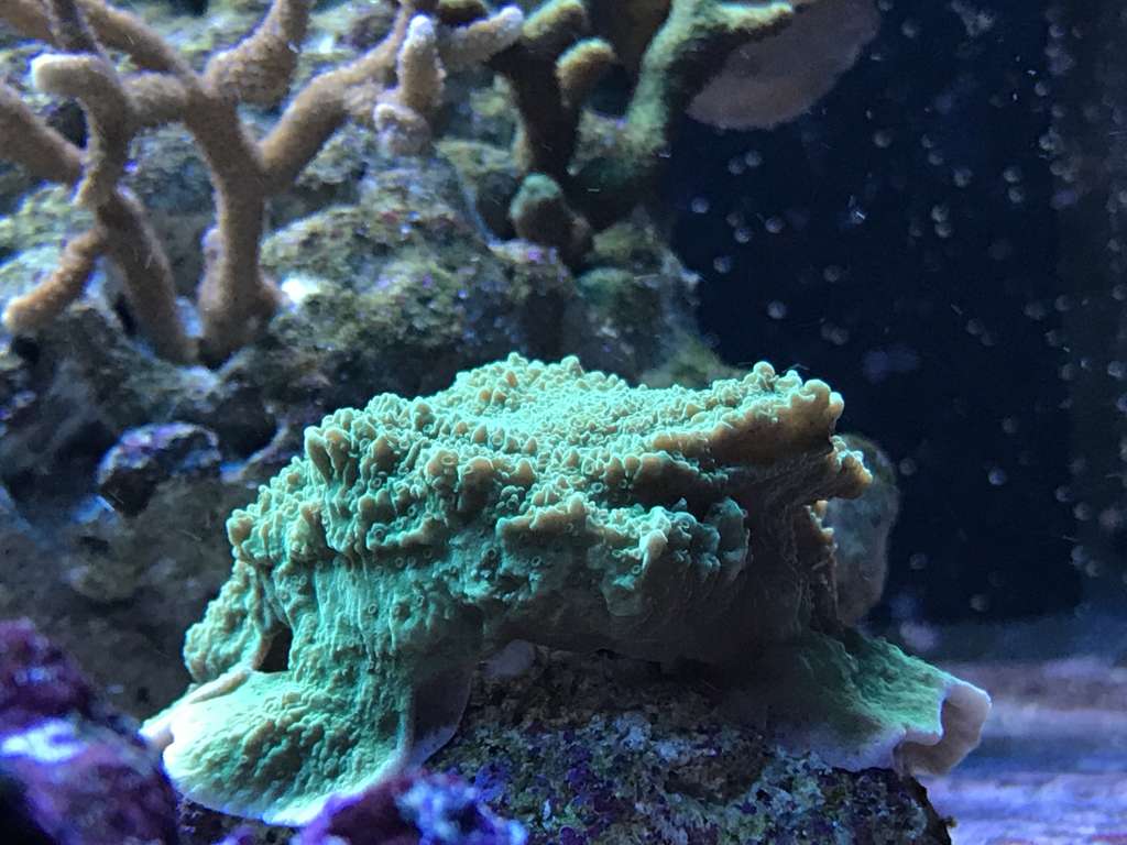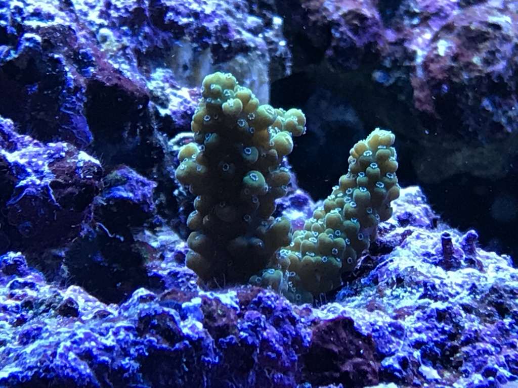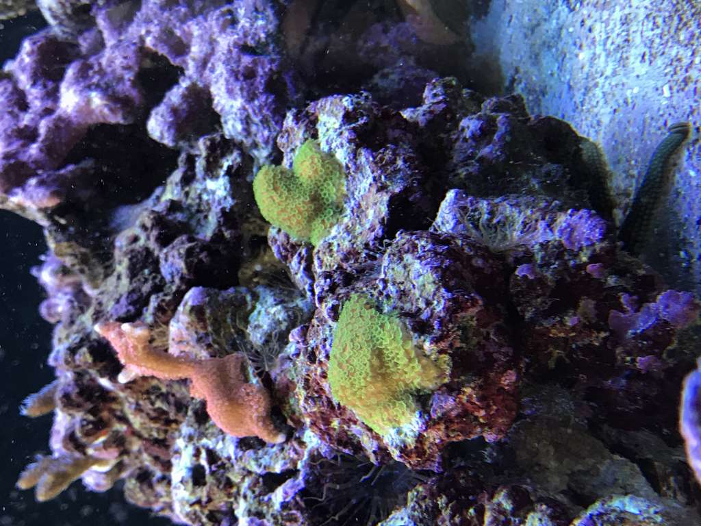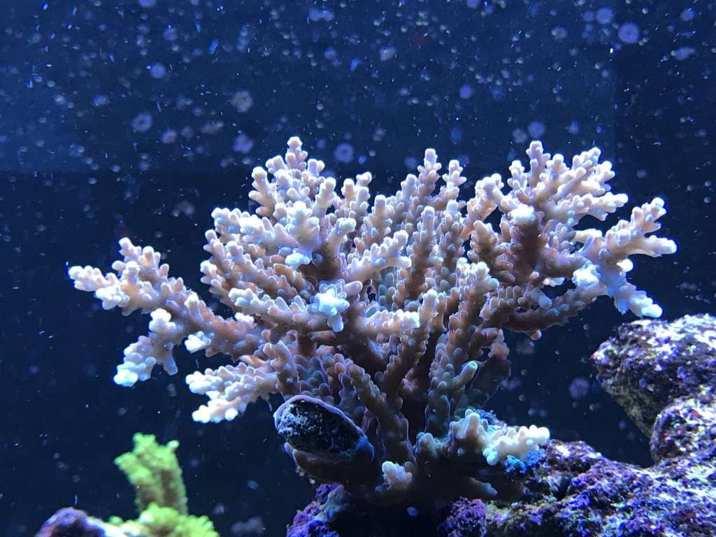 Koral mæssigt er der ikke rigtigt sket så meget. Polypudfoldelse er lidt tilbagetrukken efter C. collare er tilføjet da der bliver nippet til alt. Meget nysgerrig fisk, spiser ikke korallerne, men smager på det hele. Den har været i tanken i 14 dage nu, og er begyndt så småt at tage lidt foder. I takt med at den tager mere foder til sig har der også været mindre koral nipperi, og polypperne viser sig så småt igen. Til gengæld har den barberet akvariet for glasroser - Der var 500+ små roser, bogstaveligt talt hvert et sted der fik lys. Jeg kan nu ikke finde en eneste glasrose - End ikke de store på Ø 4-6cm. Alt er væk.