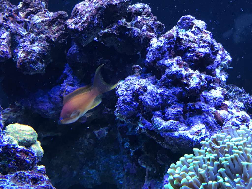 En Anthias tog også nærmest lige fra den ene dag til den anden springet fra hun til han, og har skiftet noget farve, fået en badass hale og et temperament der passer dertil. Derudover er den blevet næsten en halv gang større end de resterende 5 hunner som alle er 5-6cm.