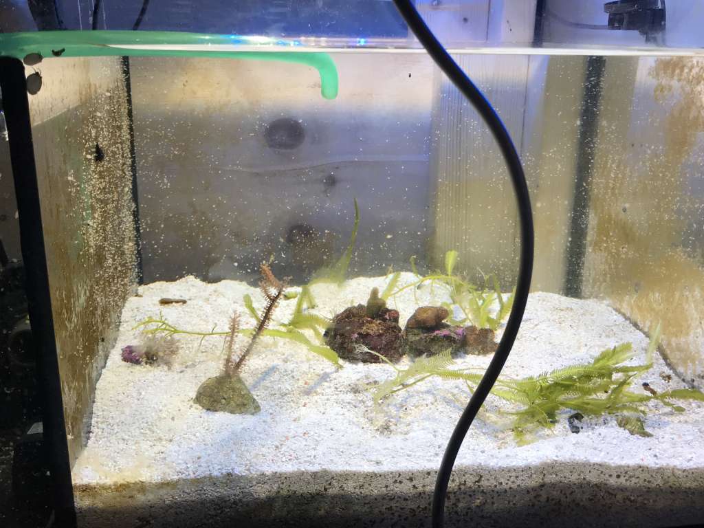 Synligt har der ikke været noget videre næring opblomstring at komme efter, men der er stadig hurtigt grøn film på ruderne, så lidt må der komme endnu. Men der var også 14 fisk, hård fodring og 45kg friske sten der skulle indkøres fra dag 1. Det kan ikke gå helt ustraffet hen - Men ingen koraller har ladet livet!