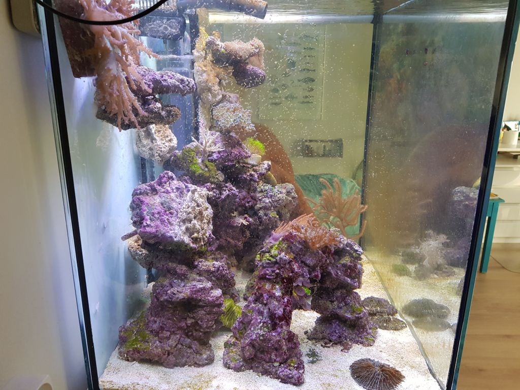 Det ser godt ud. Mit nye akvarie kører også uden skummer, da jeg vil holde det simpelt. Koraller bliver i den helt nemme ende da jeg pt er for doven til andet
