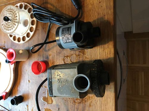 Den nye pumpe er noget mindre end den oprindelige og det er jo et kina produkt så der er ingen samlevejledning, så den nye pumpe stå nu bare oven i den gamle pumpes holder (det virker lidt underligt). Nu er den monteret og stå i sumpen så må jeg se hvor meget jeg bruger selv reguleringsfunktionen. Billeder kommer i næste indlæg