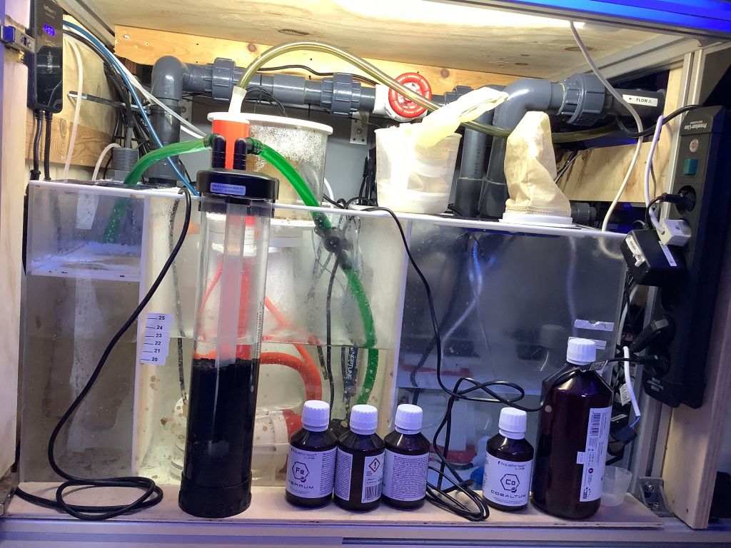 Brugte først en 200 udgave, men skummede ikke kontinuerligt. Det hele står i en TMC XL Sump, som rummer den plads som er nødvendigt, som evt at sætte aktiv kul eller fosfat binder.