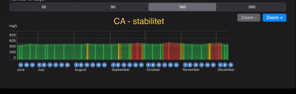 Noget positivt er der dog ved testen, da jeg har stoppet dosering af sporstoffer, fra sidste test, som viser mig at det falder.