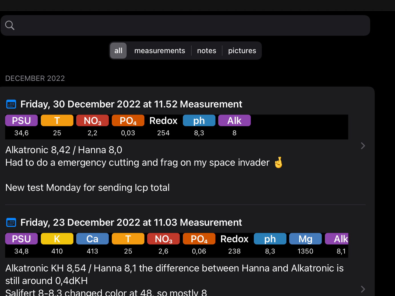 Hvis jeg ikke tager disse test ugentligt, er det svært at holde øje med evt forandringer i akvariet, som ikke lige kan ses på koralerne.
