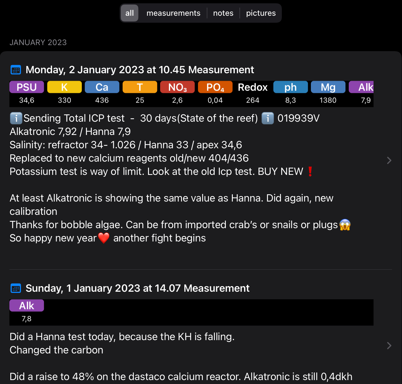 Har skiftet til en ny Hanna Calcium reagents, som viser, selvom man bruger den ugentligt, kan den ikke holde sig for 25 test. Samme oplevelse med salifert potassium’s test. Exp. Date er 06/23, som er helt ved siden af ICP testen.