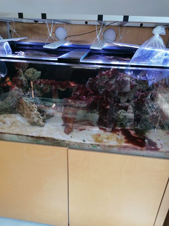 Hhhhm Nu må jeg lige se hvordan det her spænder af uden skummeren... jeg har mere tillid til min makro alger end en klodset skummer... Måske skal jeg lave min gamle ølbong skummer igen:-) om ikke andet så bare for at drikke 3liter øl i god fart, så den ikke bliver flad!