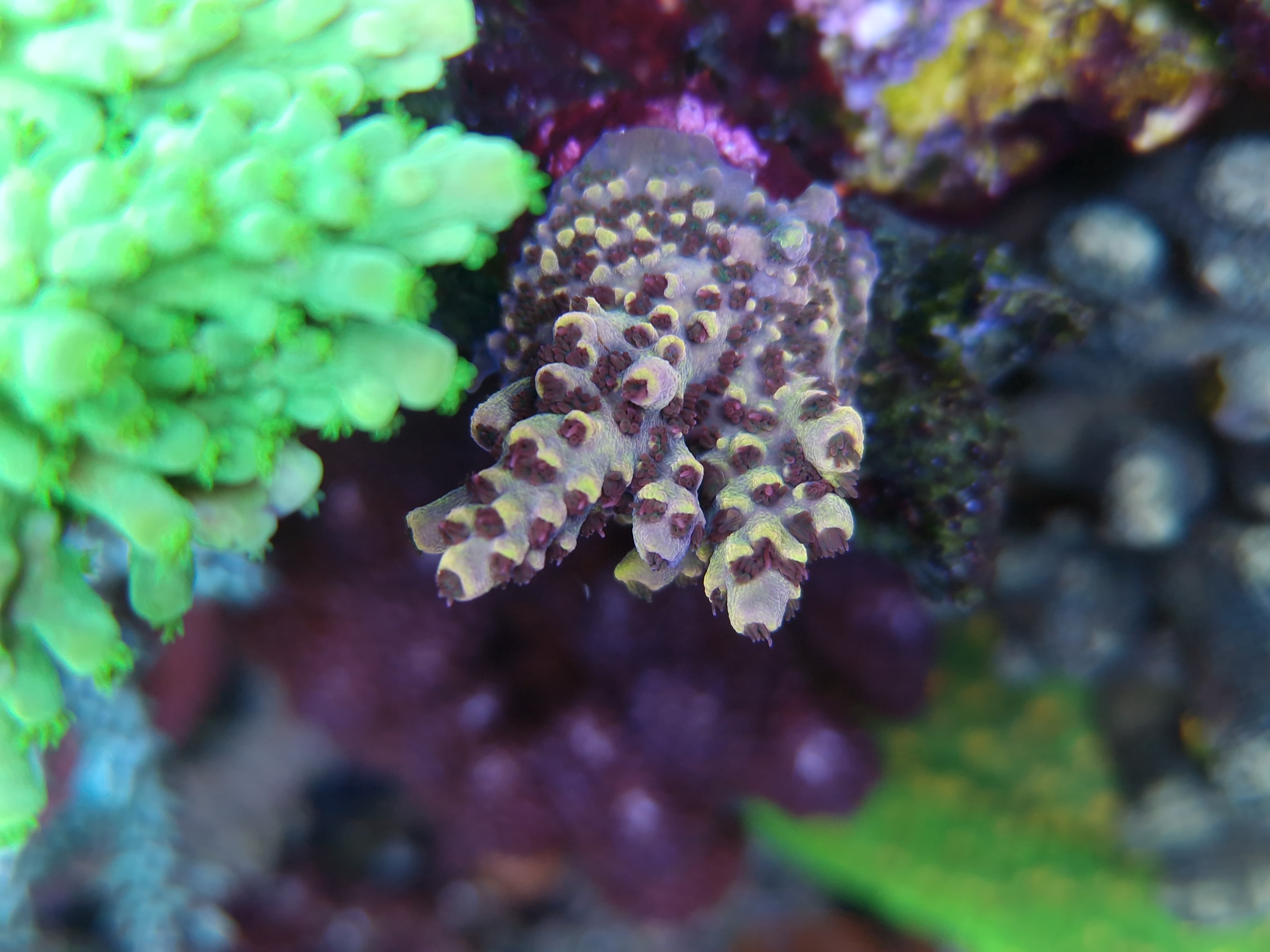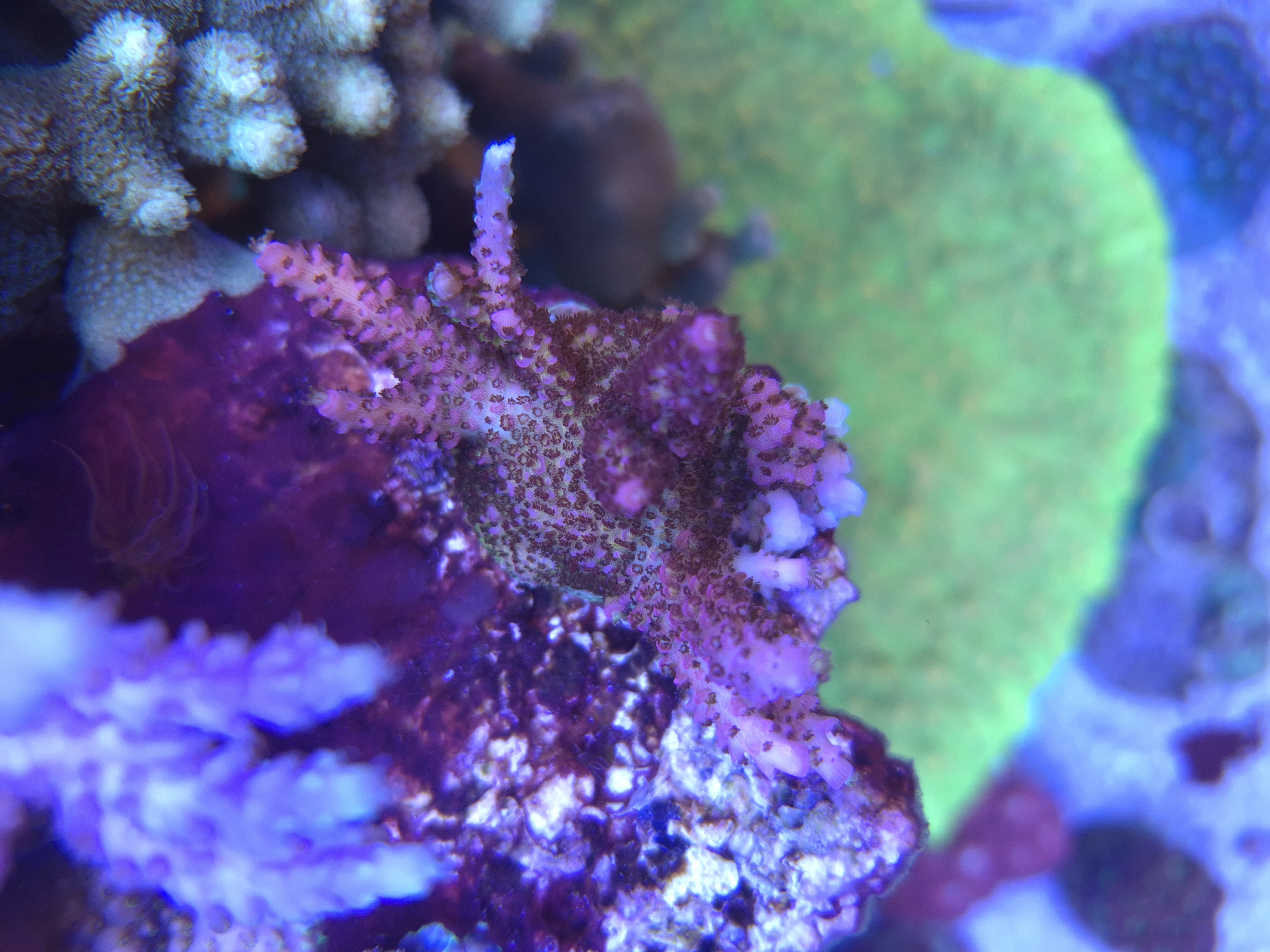 Acropora Willisae ser bedst ud. Så jeg har fragget et stykke af og placeret i et absolut angreb af