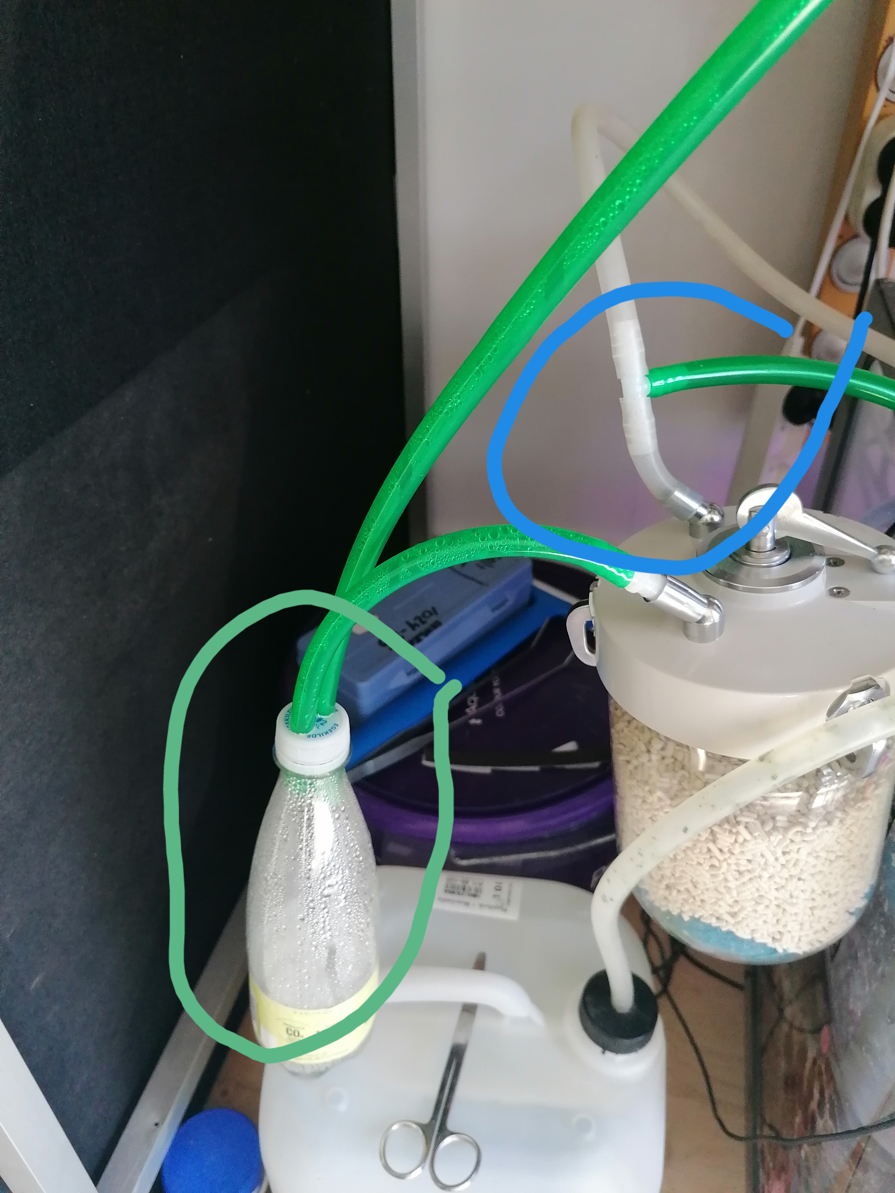 Jeg har også lavet et en en fugt opsamler (den grønne ring), så der ikke kommer formeget væske til co2 mediet