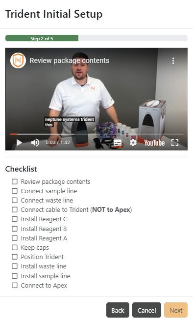 - Instruktionerne findes i APEX Fusion APP som en lille video i 12 trin, hvilket gør processen meget simpel.