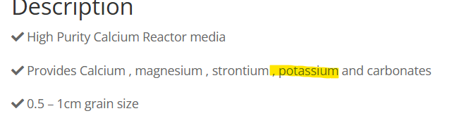 Apropos kalium igen, så mens jeg skriver det her tænker jeg på at jeg skulle have spurgt ind til calcium reaktoren. Potassium er jævnligt en del af aragonit. Ligesom strontium og fosfat kan kalium også være bundet op i det.