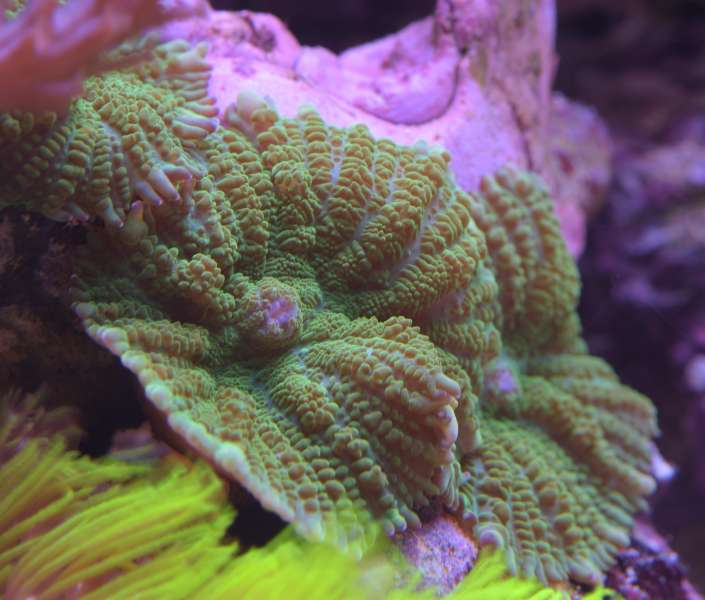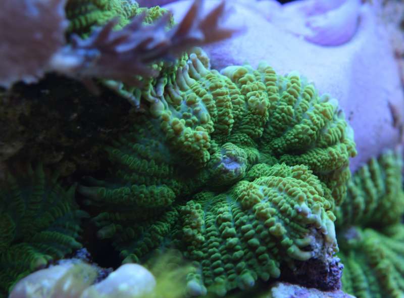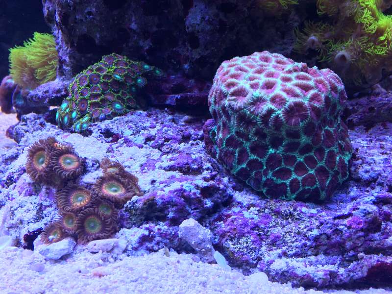 Du kan godt have både flotte LPS og SPS, du skal bare fortsætte med hvad du gør og så punktfodre dine LPS en gang eller to om ugen, jeg bruger en blanding af FaunaMarine LPS (Colour+Grow) som får stå i Aminosyre i 10 min inden jeg spreder dem over mine LPS med en lang pipette.