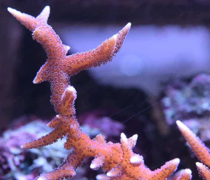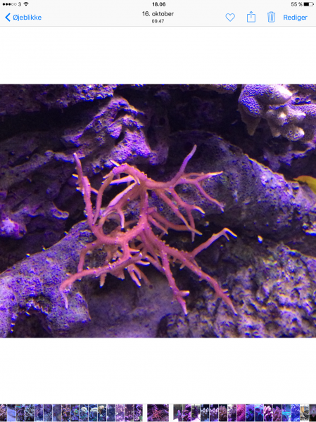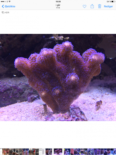 Jeg har den sidste måneders tid kørt med ren T5 lys, hvis du ser lidt tilbage i tråden kan du se at jeg på den konto var ved at brænde alle mine koraller af, da jeg ikke liiiige havde tænkt på den massive PAR de giver og ikke havde skruet ned for lys tiden. Pt køre jeg 5 timer med 6 rør og så 2 rør sol op/ned. Jeg skruer langsomt lidt op for tiden på de 6 rør.