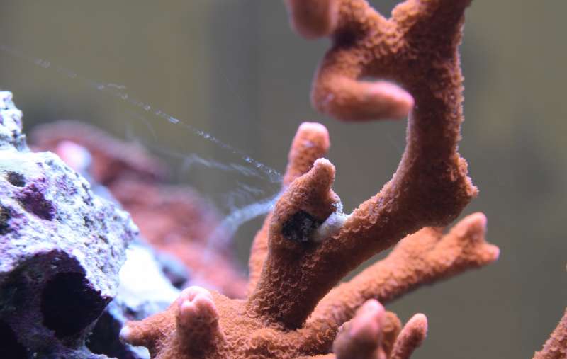 Hvis rørsneglen kan trække sig helt ind i skelettet på digitataen, så kan jeg anbefale lidt lim eller reefbond i hullet. Det bliver de rigtigt trætte af.