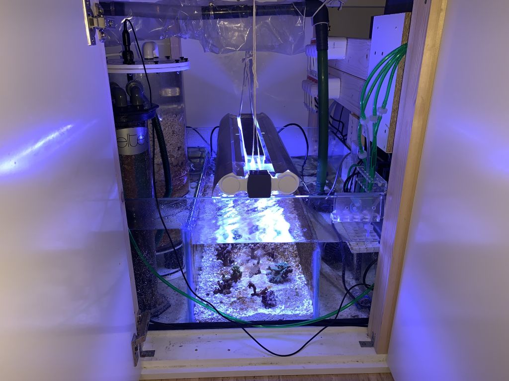 Det går fremad her på matriklen. Skummeren er endelig kommet op og køre (den er altså nuttet). Ozon er blevet tilføjet. Kinojser doser monteret, kh direktoren spytter værdier ud der faktisk stemmet med mine målinger og icpen. Refugium er ved ikke at være brunt længere. Og så har vi også lavet en ny slag fragmenter her på matriklen igen, de er sådan lidt mere lodne i det