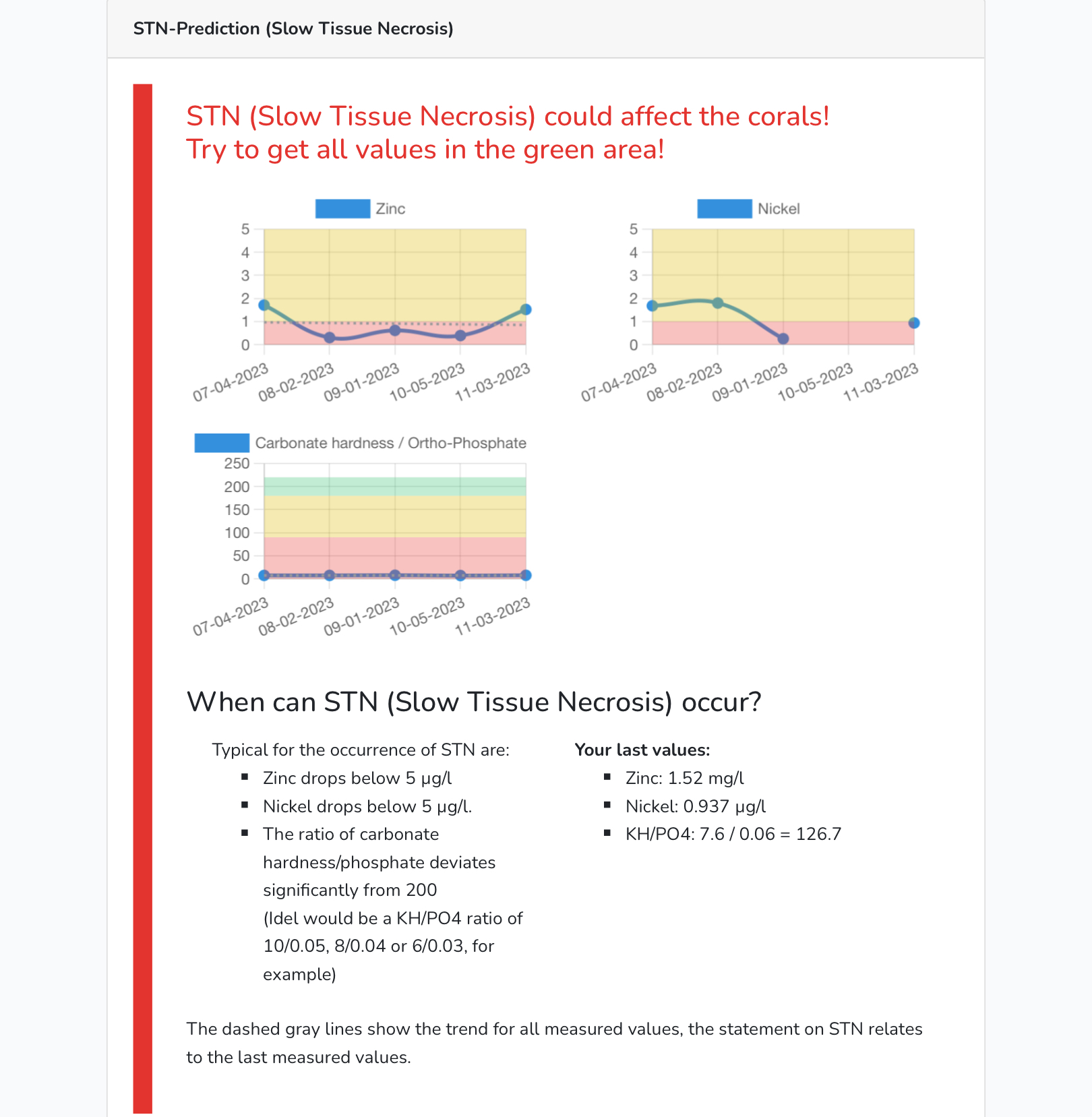 Den acropora som jeg klippede, fordi den blev dræbt af nabo, troede jeg, ser ud til at have STN. Jeg var blevet advaret lidt fra ICP , pga jeg ikke kan holde mit Ni(Nikkel) og Zn(zink) oppe. Jeg dosere nu 10ml hver dag af A- og K+ elementerne også, så bliver spændende og se, om jeg er kommet op.