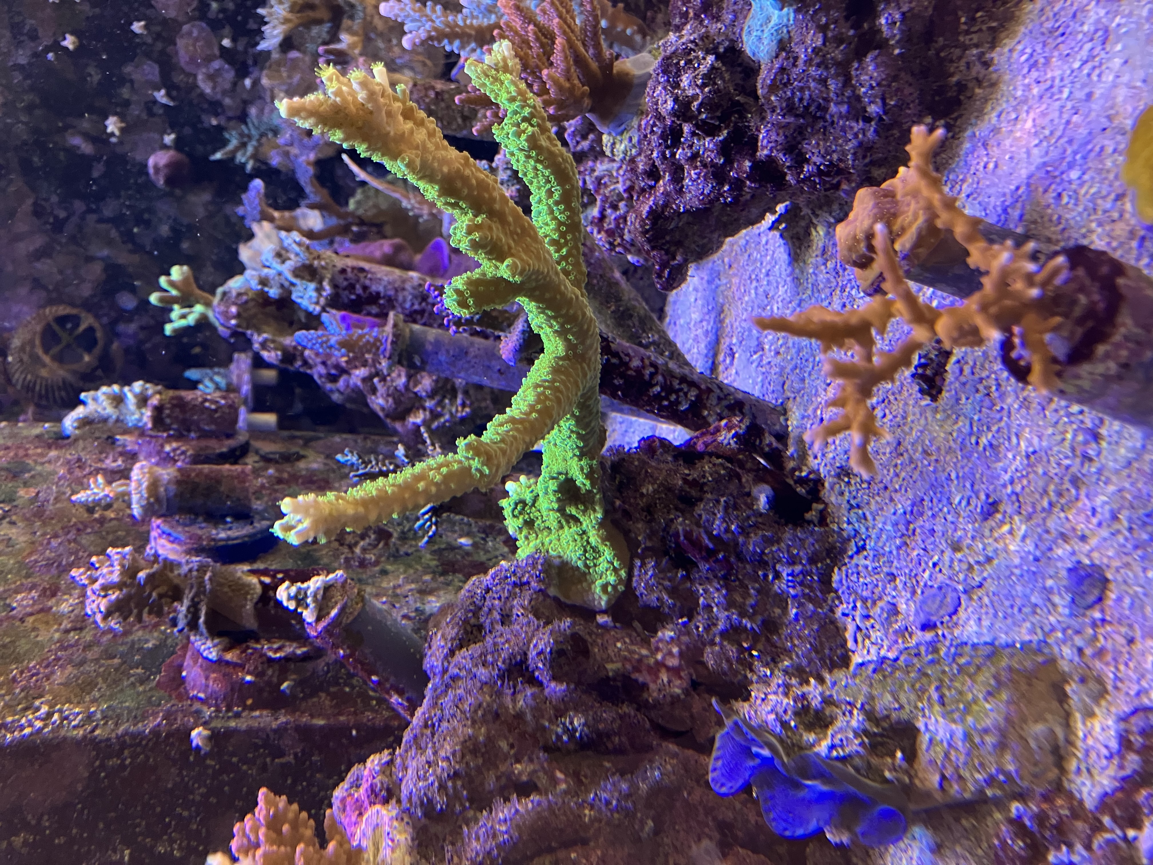 Mine acroporaer ser ud til at stortrives med det og polypperne kan næsten ikke komme længere ud- derudover kan jeg også se flere nye vækstspidser.