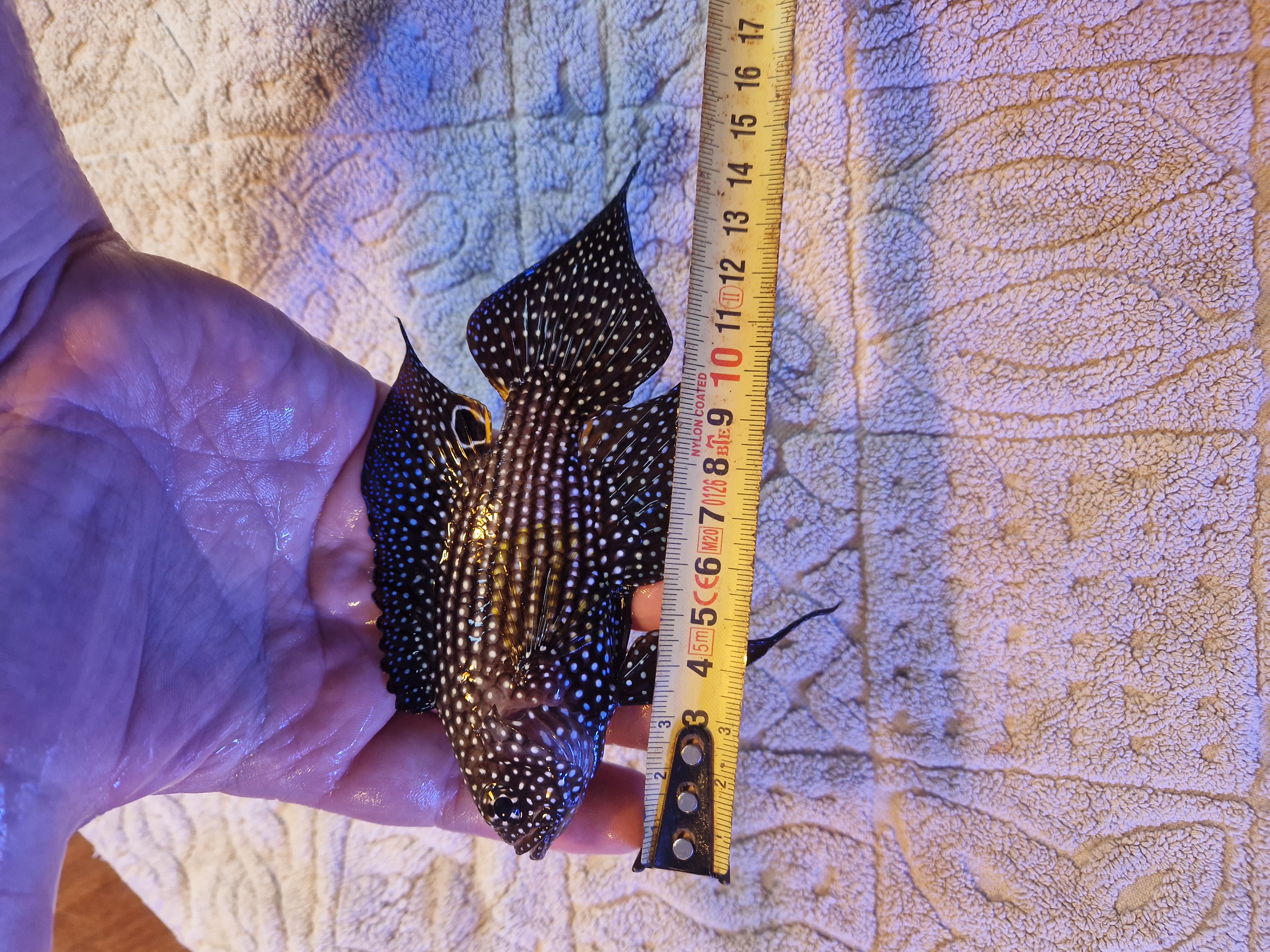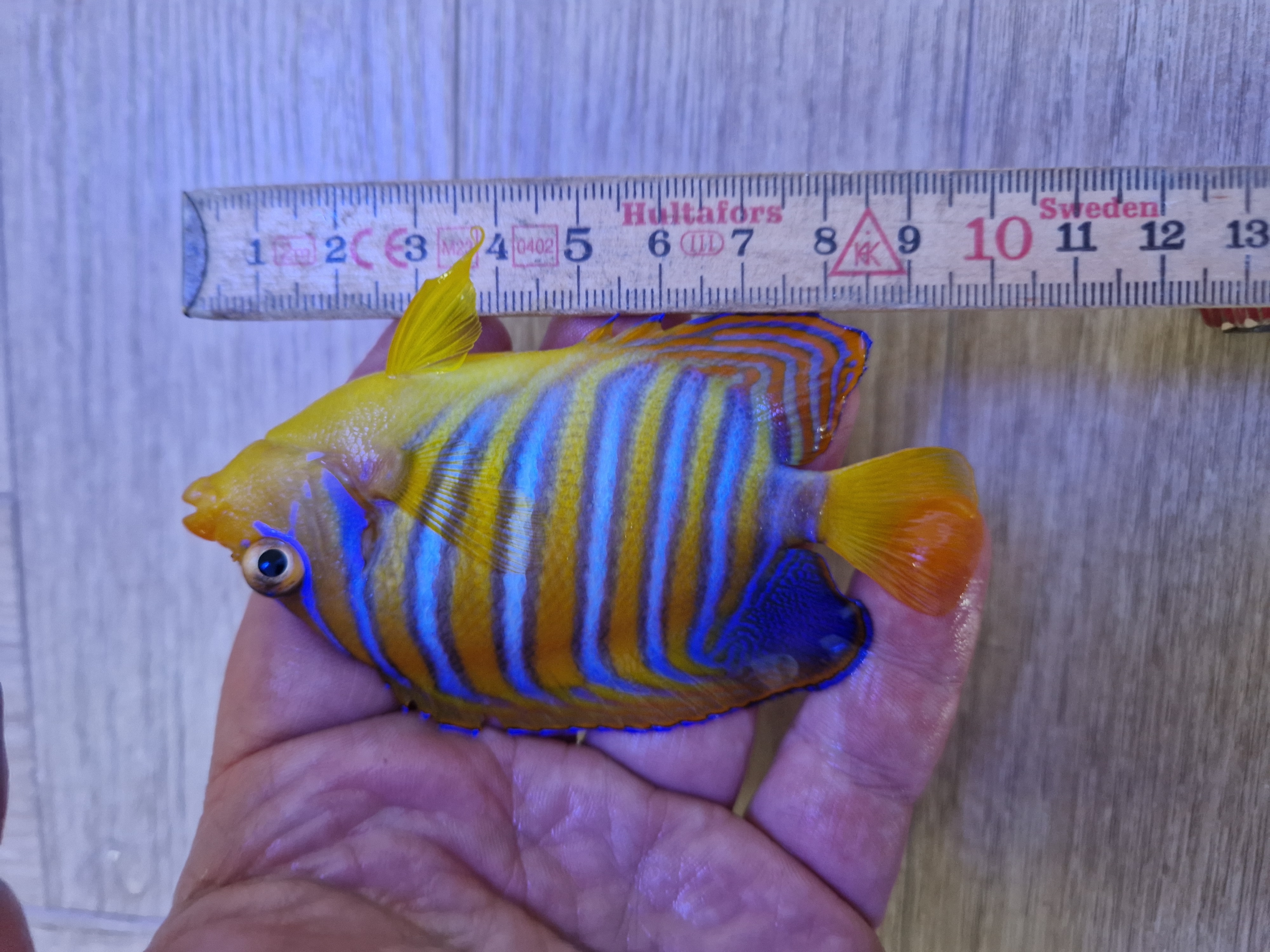 16 cm er nasoen. Det er 1 år og 2 dage siden jeg hentede den. Så måske den vokser bedre med 2 meter svømmeplads