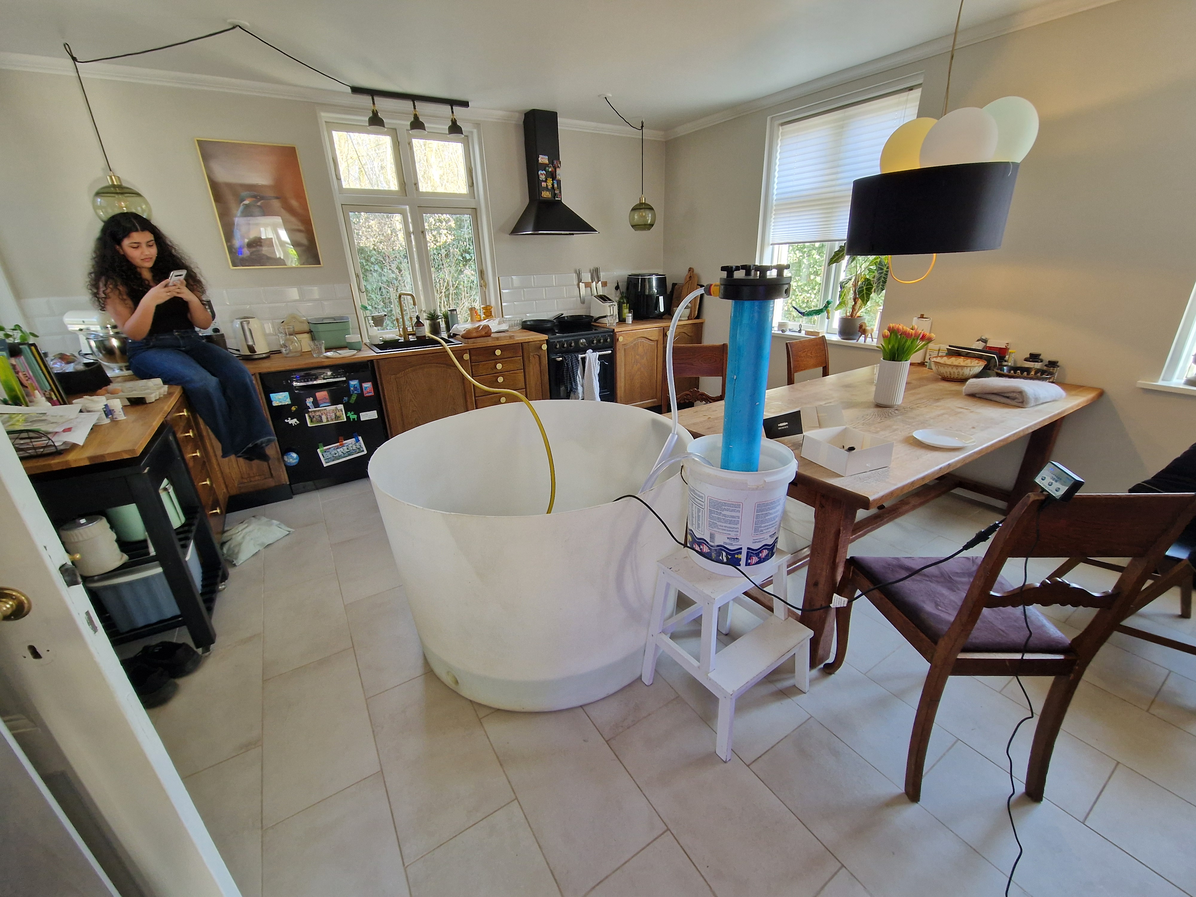 Jeg synes selv jeg er mega betænksom og forbereder vandet i køkkenet hvor gulvet kan tåle lidt vandspild.