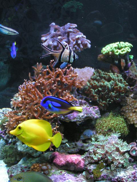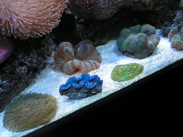 der er kommet lidt nye koraller i akvariet og så et par Muslinger fra Moby. og jeg har rykket lidt rundt på stenene i den ene ende for at få de nye koraller lidt op i vandet.