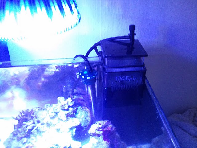 Da jeg satte min nye skummer på lavede jeg rav i det og værdierne røg helt af h... til med en helt masse alger til følge og jeg kæmpede en lang kamp med at få dem ned igen med en masse vandskifte, fik heller aldrig overløbet på skummeren til at køre ordenlig da den simpelthen var for følsom over for svingninger i vand niveauet. Så det endte med jeg gik tilbage til det jeg kendte og satte mit gamle hængefilter på igen, siden har jeg købt et vandpåfyldnings system men jeg orker ikke prøve at sætte den op igen, nu når jeg lige har fået det hele til at spille igen og nitrat igen går i nul.