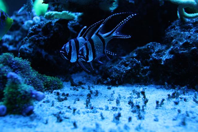 Sys næsten lige jeg har læst den i naturen hovedsagligt lever af alger og svampe, og den faktisk skulle være en af de kejser man kunne have held med ikke rørte korallerne, har en Genicanthus nu og de er sku nogle dejlige fisk, men konen sys ikke om dem da de ikke har den vilde farve man er vant til fra saltvandsfisk. Ville ellers godt have et par små Bellus