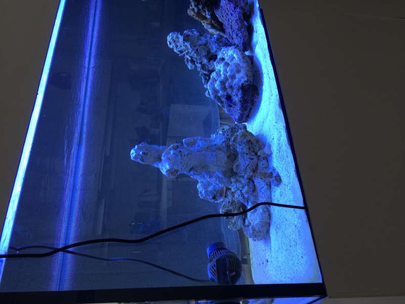 Har forøvrigt flyttet GYRE pumpen til den planlagte plads, vertikalt ved siden af overløb. Det ser fint og effektivt ud og jeg kan ikke få øje på "døde punkter" køre på 50% og baljen er 150x60x60. Uhyggelig effektiv....