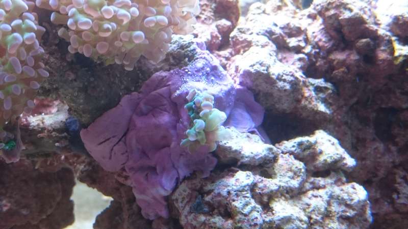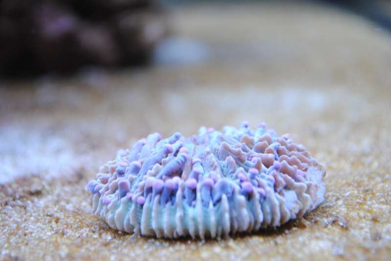 Små fragmenter af min Euphyllia paraancora (grøn med lilla spidser)