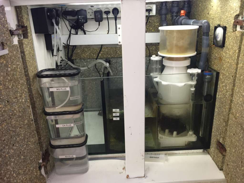 Jeg har bygget en magnetomrører på min doseringsmaskine. Den starter 5 minutter før doseringspumperne kører og sørger for at fjerne bundfald fra mine beholdere. Som det fremgår af billederne, er der kommet en del alger igen. De var ellers udryddet, men efter af jeg fjernede 2 søpindsvin, er de kommet tilbage. Jeg må ud og investere i en ny pindgris.