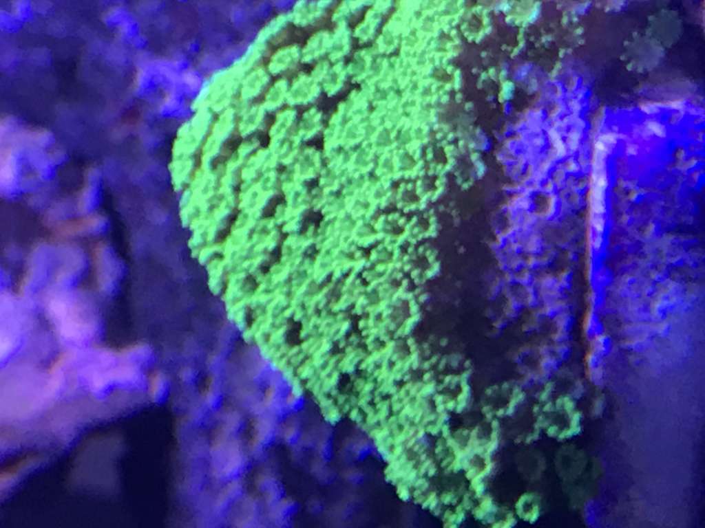 Der er flere af den type montier der har de grønne polypper. M.australiensis, M.efflorescens bla.ViggoN skrev:godt bud, svært at sige efter jeg har kigget lidt på google billeder, altså den har meget tætsiddende "blomster" polypper, og har et glat skellet.ole kekkonen skrev:Montipora confusa?