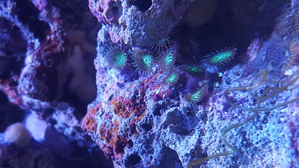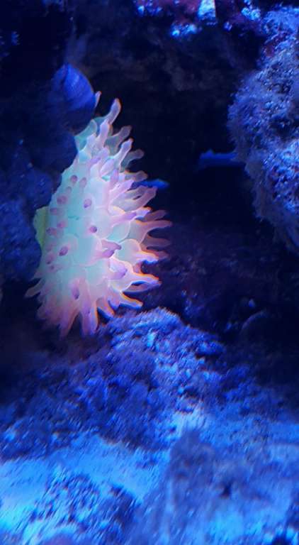 Jeg vil lige på samme tid fortælle at der sad en anemone i mine levende sten som jeg ikke havde set da jeg købte dem. Den ser ud til at trives og den får en reje engang imellem.